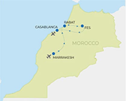 Travelers are responsible for booking their own flights into Marrakesh on arrival and out from Casablanca at the conclusion of their Our Story travels.